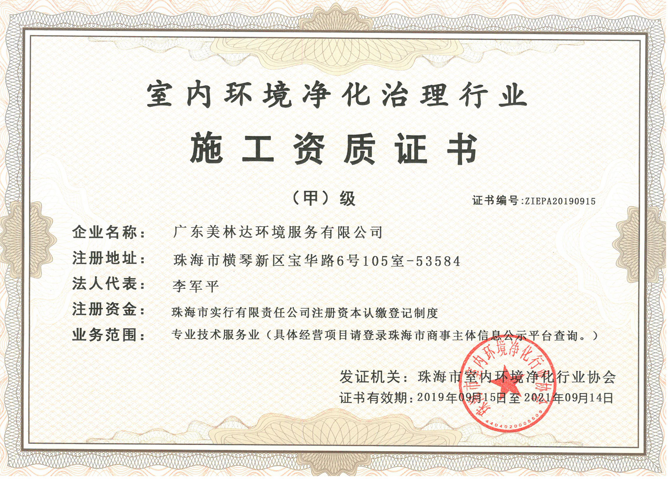高級(jí)室內(nèi)環(huán)境凈化資格認(rèn)證